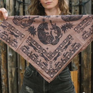 Hi there, I'm Daisy Malchevsky of Fable Studio. I like to think of my work as functional art, often falling back on bandanas as my go-to canvas. Something you can wear and hold and even covet.